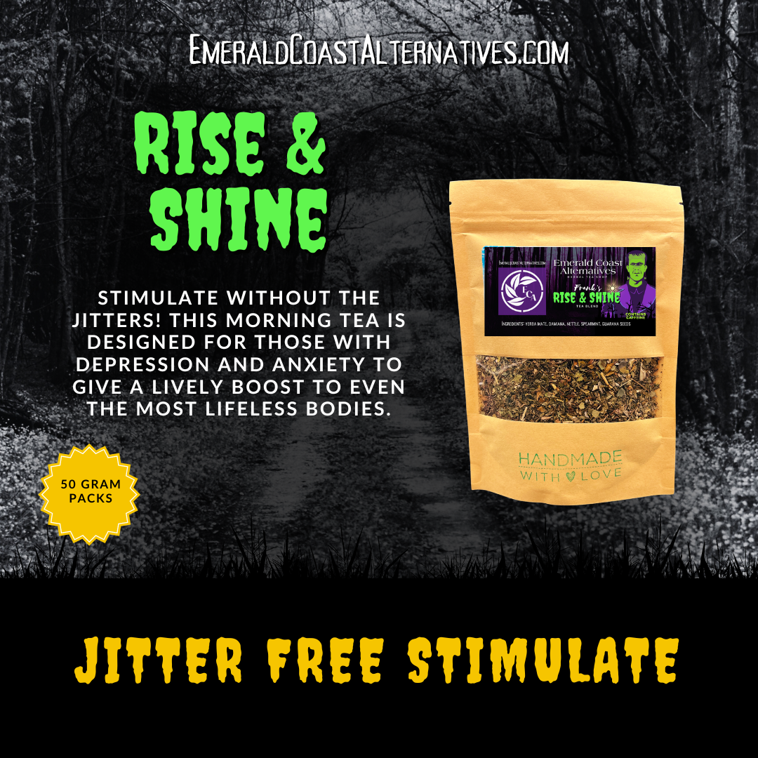 1. Frank's Rise & Shine - Stimulate without the Jitters! This morning tea is designed for those with depression and anxiety to give a lively boost to even the most lifeless bodies.