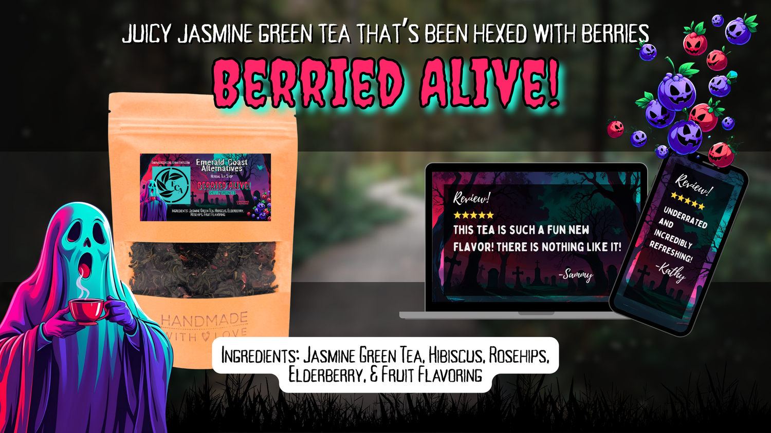BERRIED ALIVE! Ghostly Jasmine Green Tea with Hibiscus, Elderberry & Frighteningly Fruity Flavor