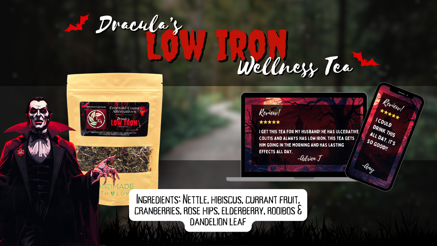 DRACULA’S LOW IRON TEAHerbal Blood Booster for Iron, Immunity & Inflammation