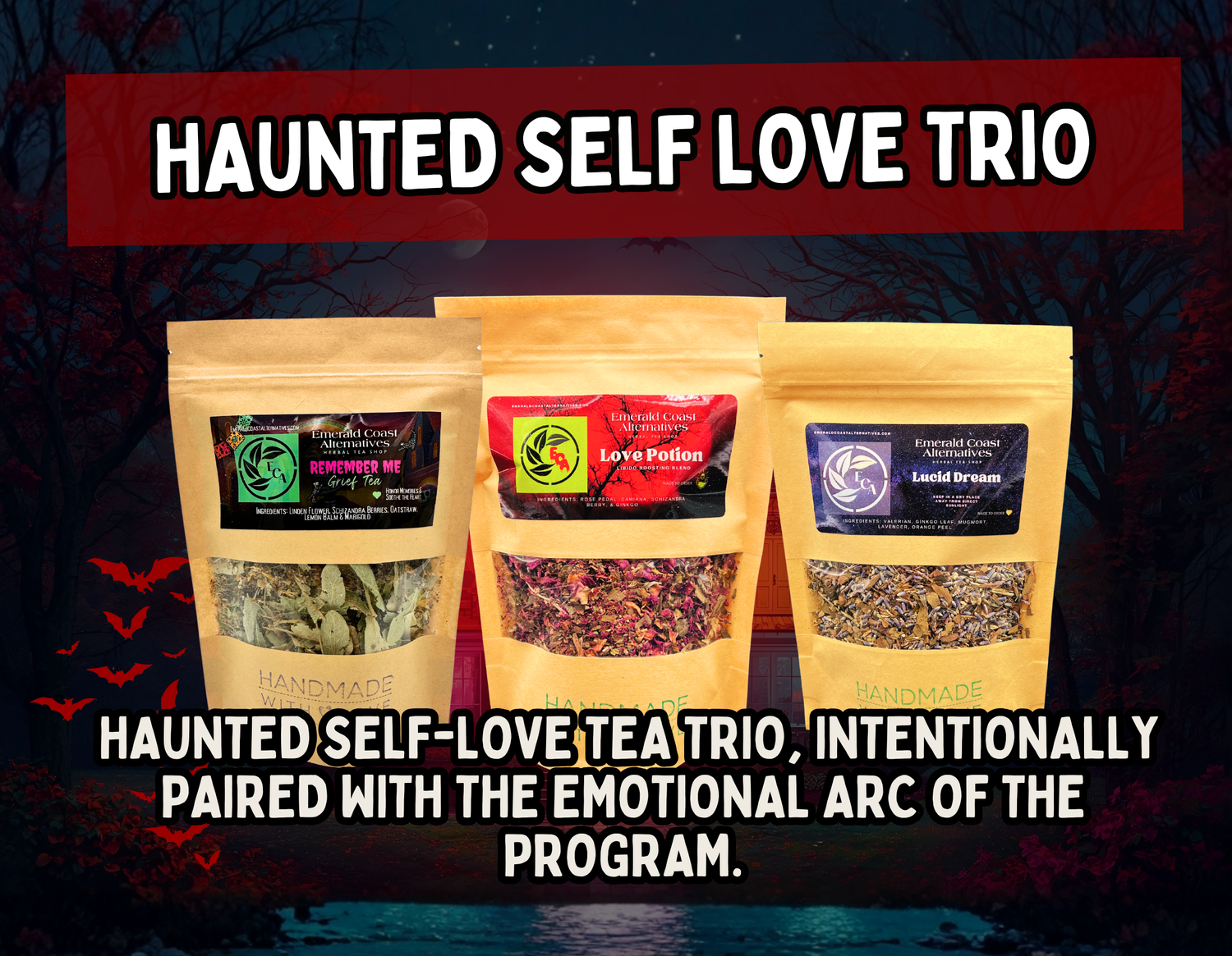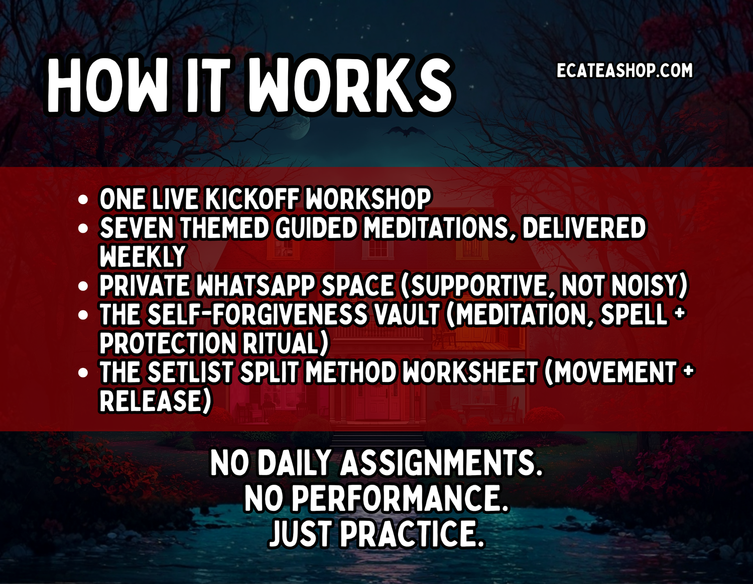 A live group program for spooky lovers on a self love journey through weekly guided story-led meditations and tea magic.