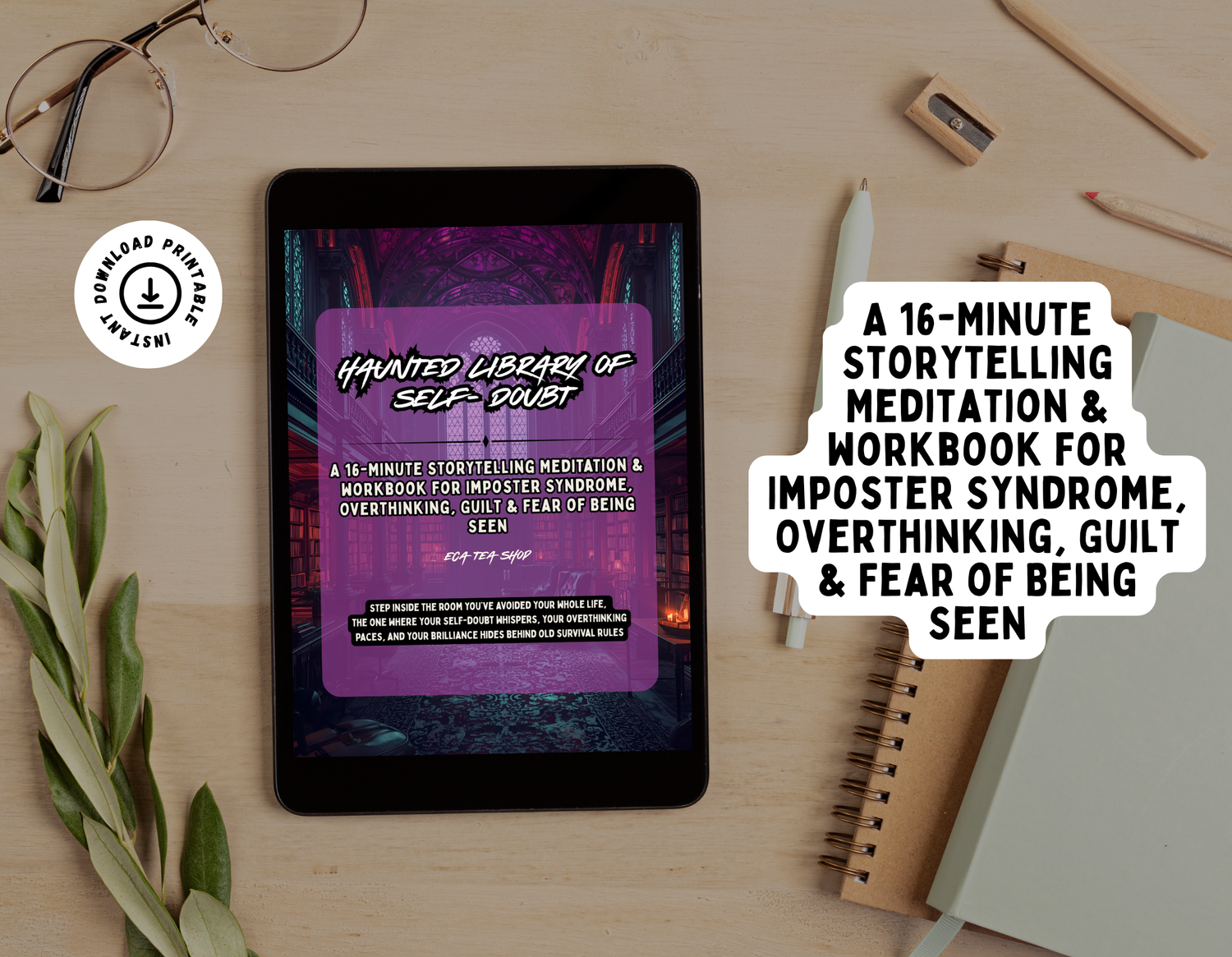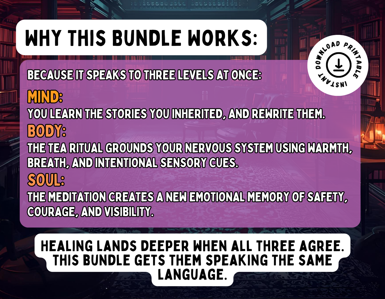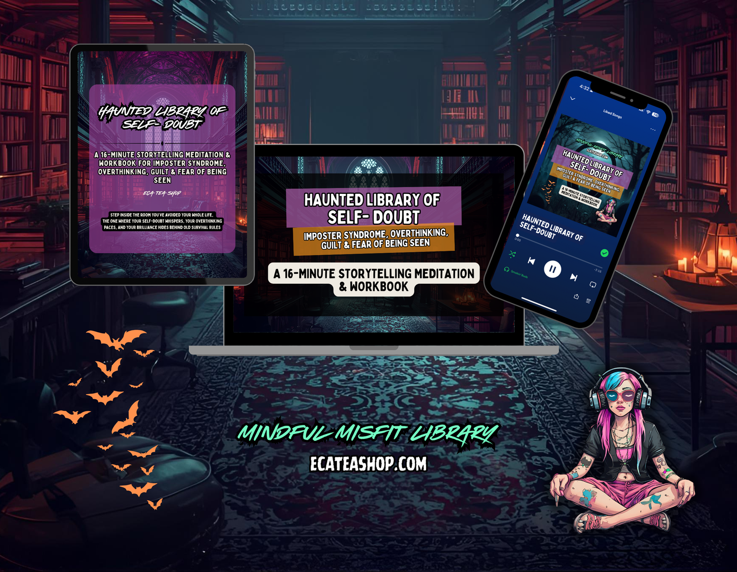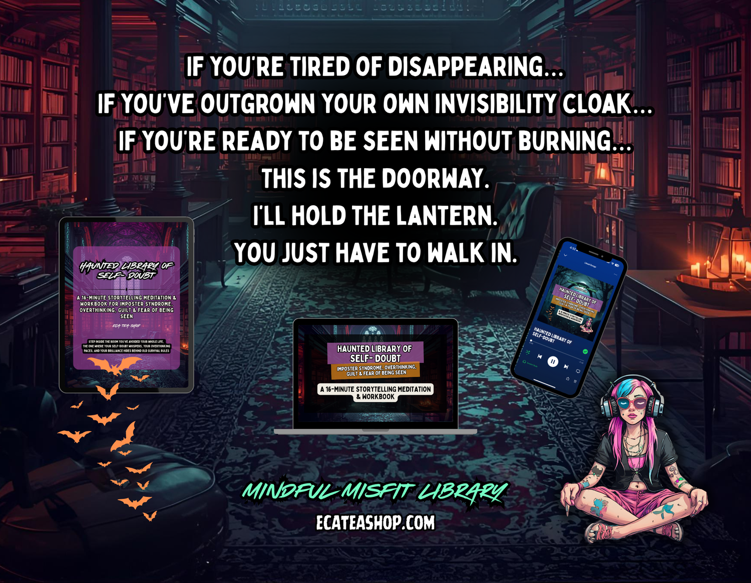 Inside this haunted bundle lives a meditation, a spell, a ritual, and a reclamation, all crafted to help you stop disappearing from your own life and start taking up space with tenderness and truth.